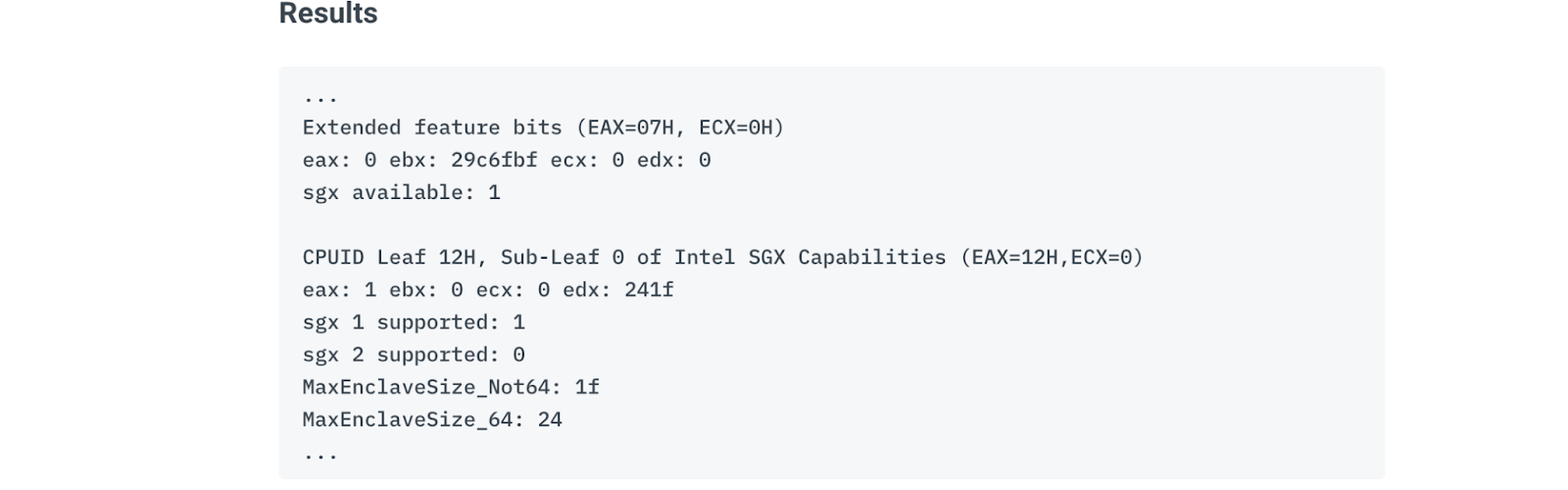 If you already own a device, you must enable Intel’s SGX and VT-x functions in the BIOS. It’s crucial for running secure virtual environments. Then you can install Linux (Ubuntu 18.04 LTS and 20.04 LTS x86_64). With that, you can also verify if your device supports SGX by running this prompt: